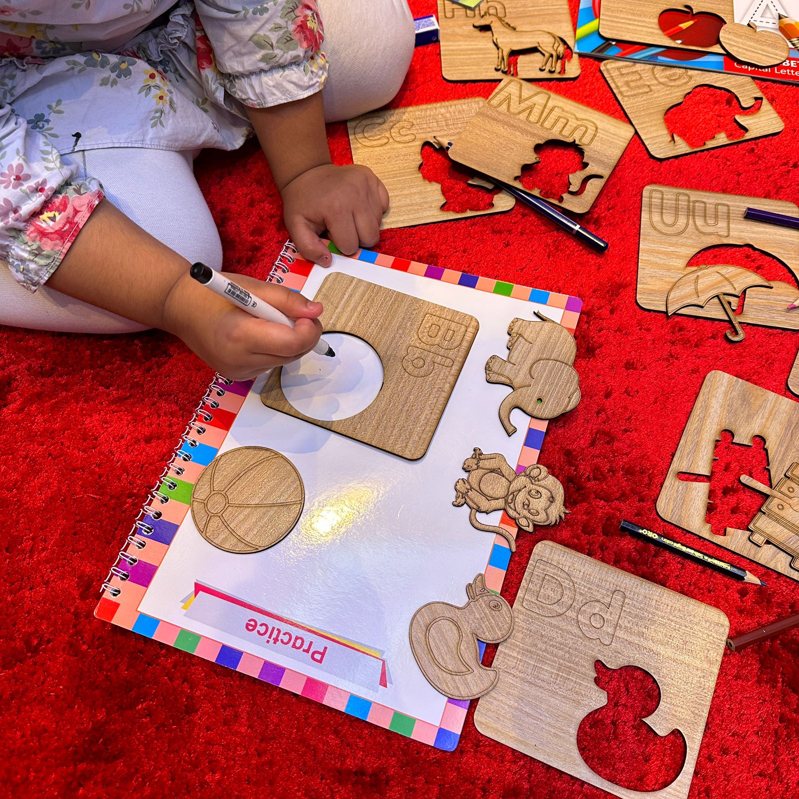 - 26 Inner & 26 Outer Stencils: Guide your child in tracing and identifying uppercase and lowercase letters, promoting early literacy skills.